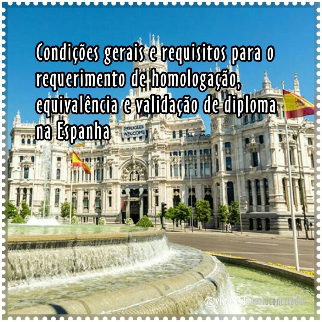 Condições gerais e requisitos para o requerimento da homologação, declaração de equivalência e validação de diploma estrangeiro na Espanha